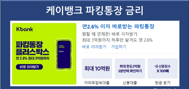 마지막으로 각 은행에 파킹통장에 금리를 보여드리고 글을 마치도록 하겠습니다.
