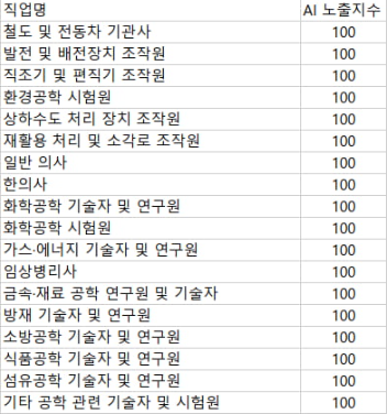 대표적인 고소득 직업인 일반 의사(상위 1% 이내), 전문 의사(상위 7%), 회계사(상위 19%), 자산운용가(상위 19%) 등의 노출도도 높은 편이었다. AI가 비반복적, 인지적 분석 업무를 대체하면서 이들 일자리에 타격을 줄 것이란 예측이다.