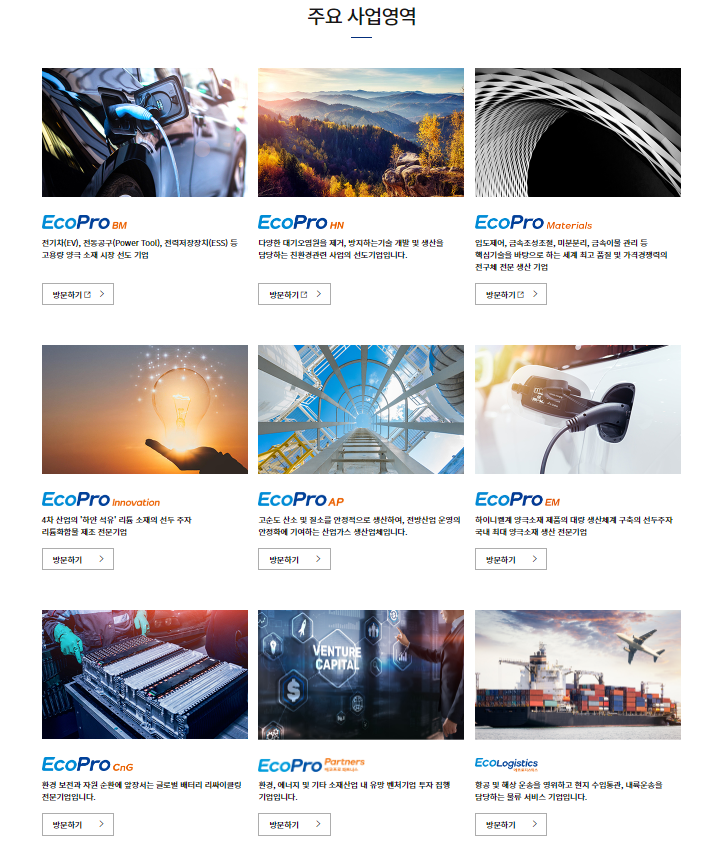 2016년 5월, 양극소재 사업 전문화를 위하여 에코프로비엠을 물적분할한 에코프로는 2021년 5월 대기환경사업의 전문화를 위해 에코프로에이치엔을 인적분할하고 지주회사로 전환하여 신성장동력 발굴과 ESG 경영체계 확립, 안정적인 자금조달에 집중할 예정입니다.
