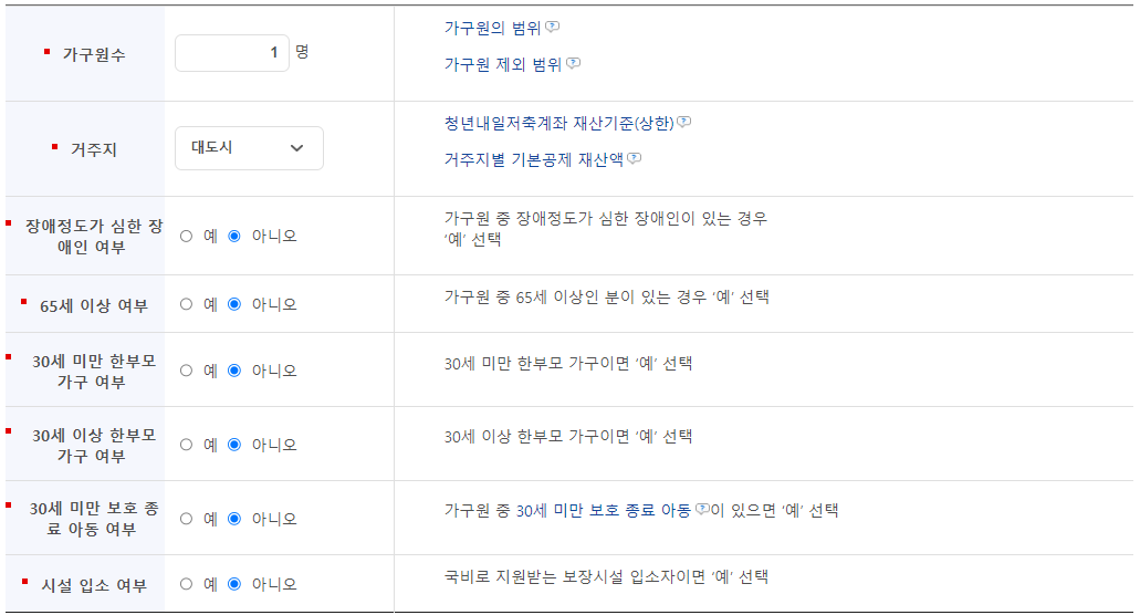 본인에 현 상황을 작성하여 모의계산 결과를 누르면 아래와 같이 신청 자격이 있는지 없는지 결과가 나오게 됩니다.